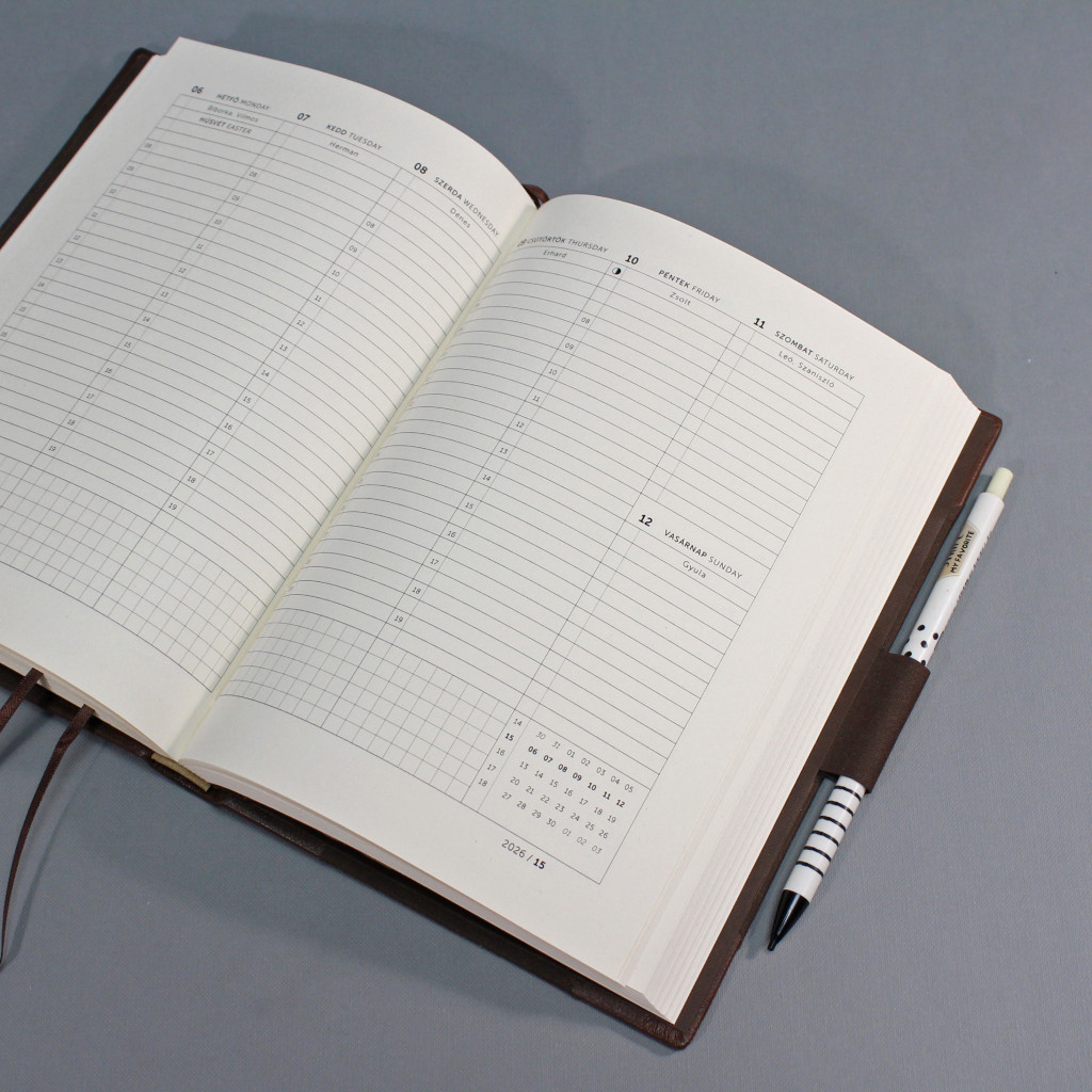 2026-os félvászonkötésű, heti beosztású határidőnapló