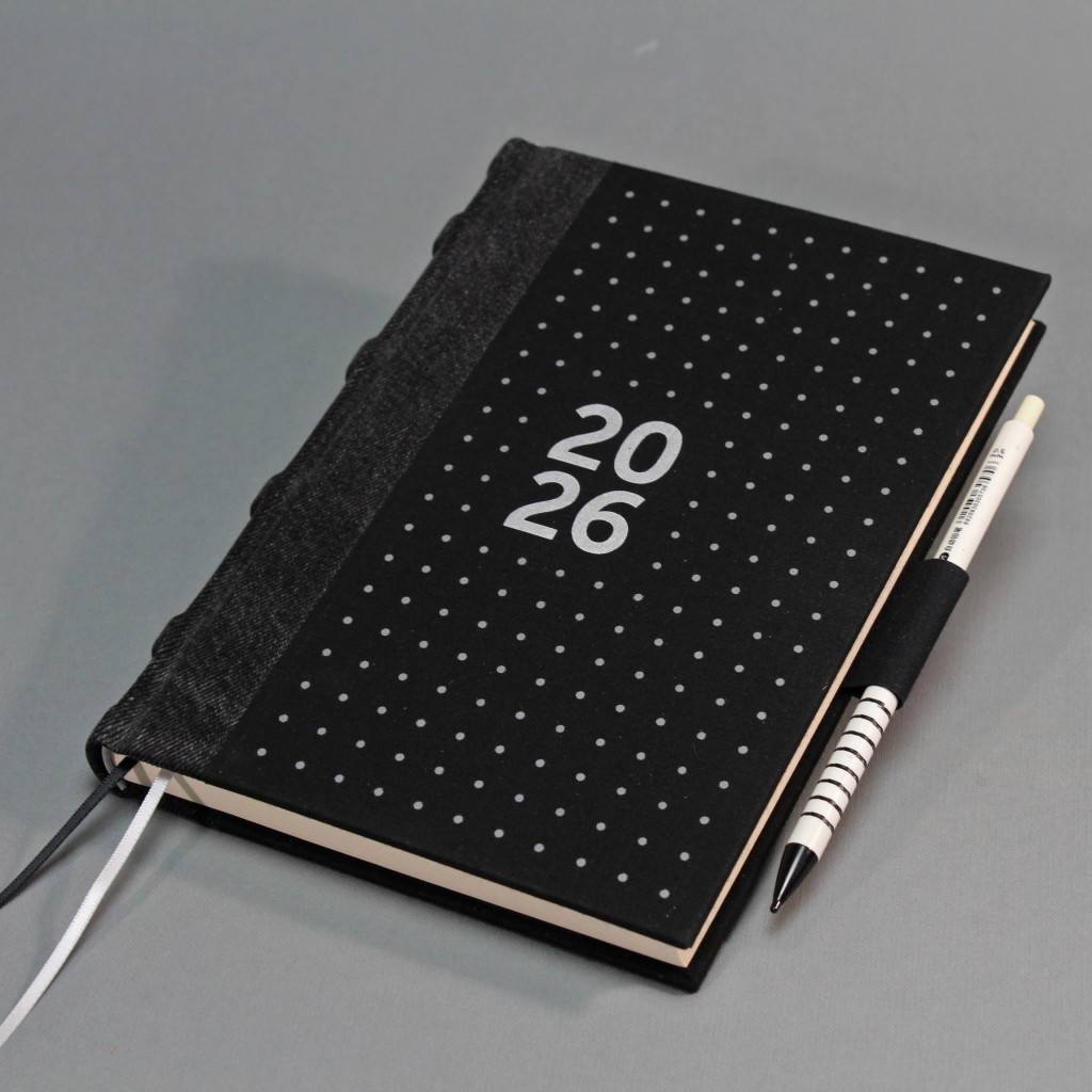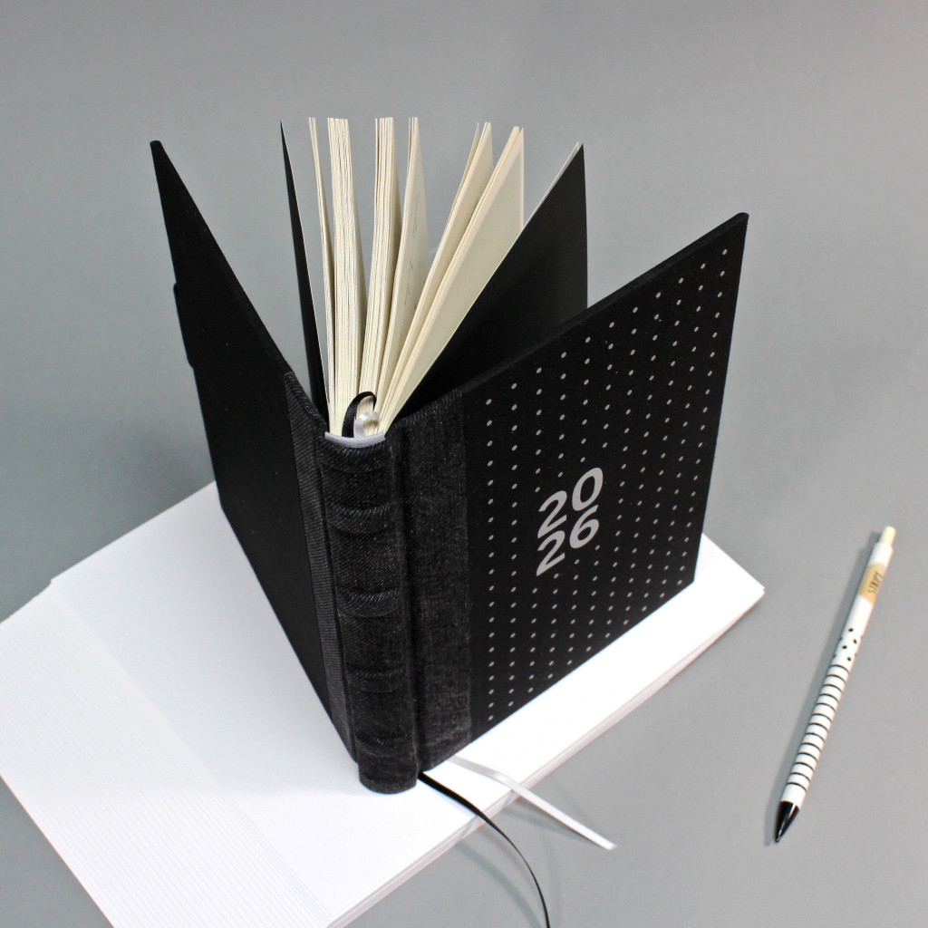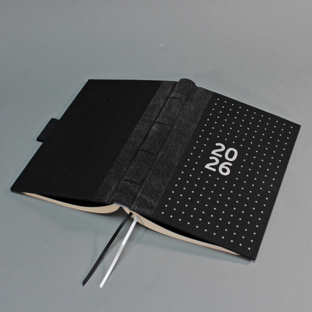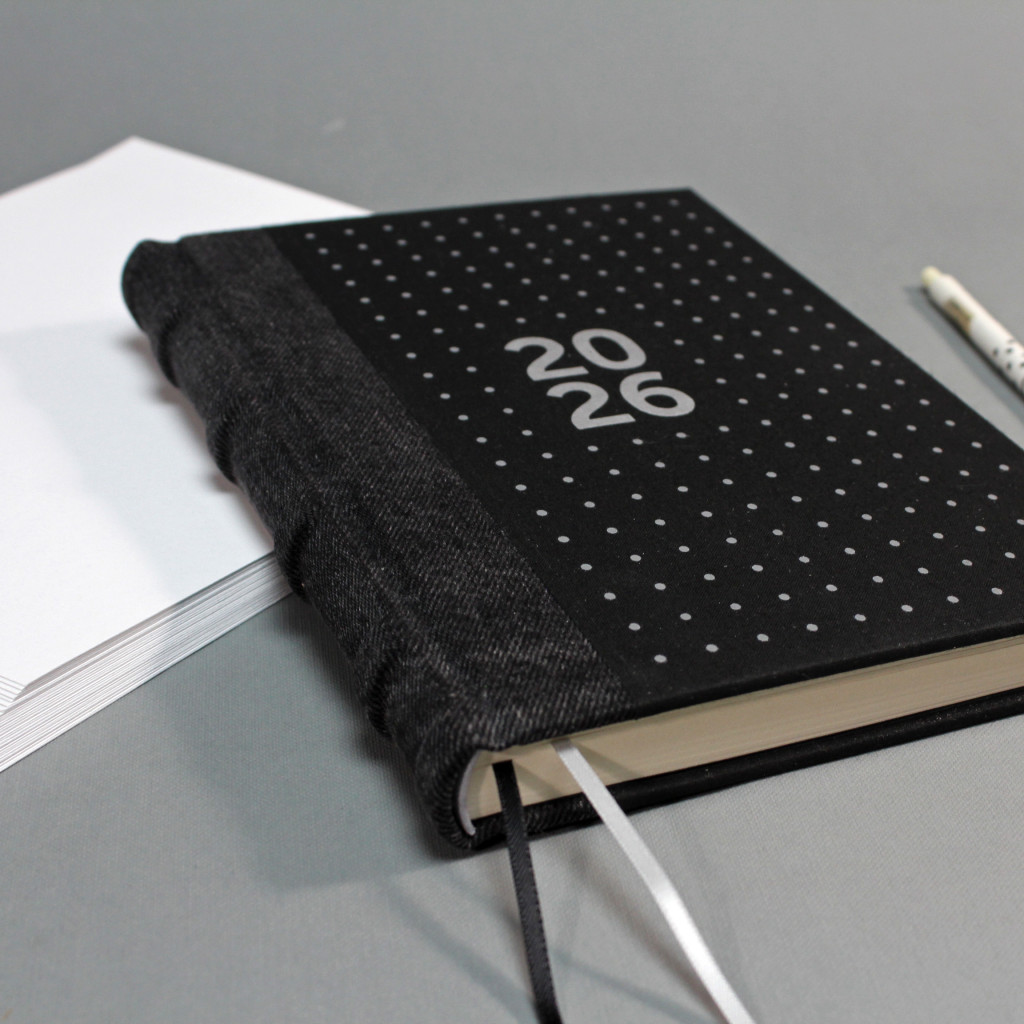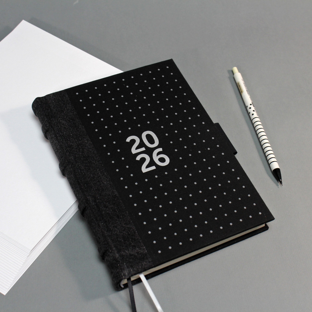 2026 heti tervező - fekete farmer és vászon, matt ezüst felirat