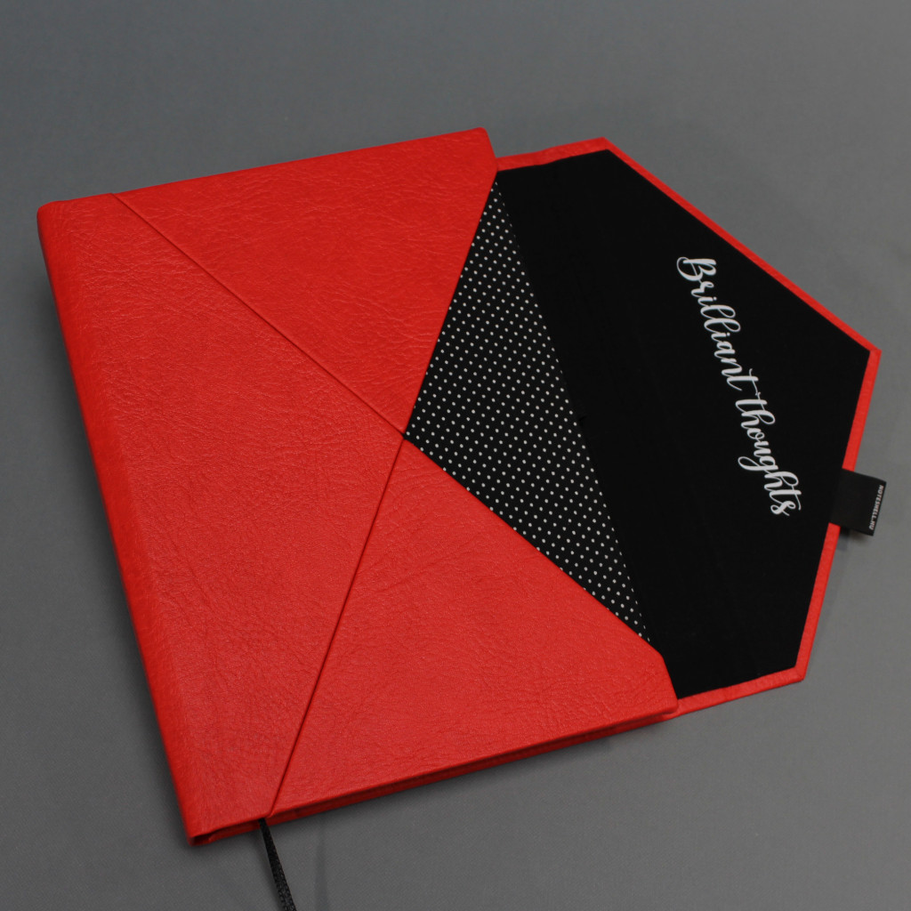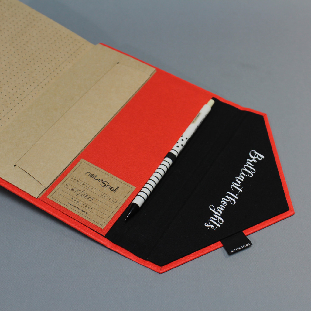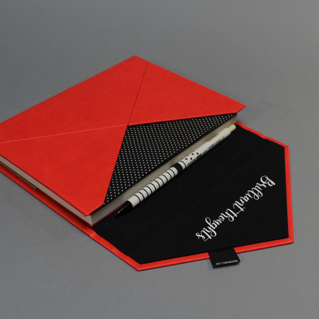 Egyedi rendelés esetén, a boríték belső részén, a lehajtható, háromszög alakú részen egyedi felirat vagy logó elhelyezésére van lehetőség, ami által személyesebbé tehető a napló: Állítsd össze a saját noteszedet!