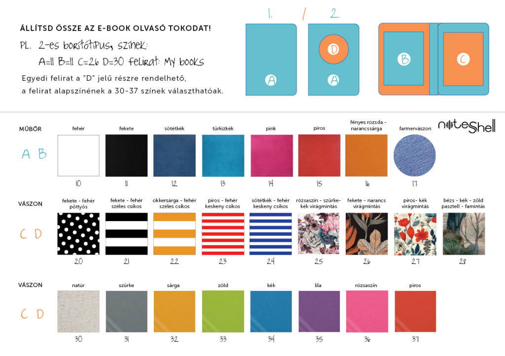 Egyedi e-book olvasó tok - 01 - műbőr és vászon - választható színekkel (2)