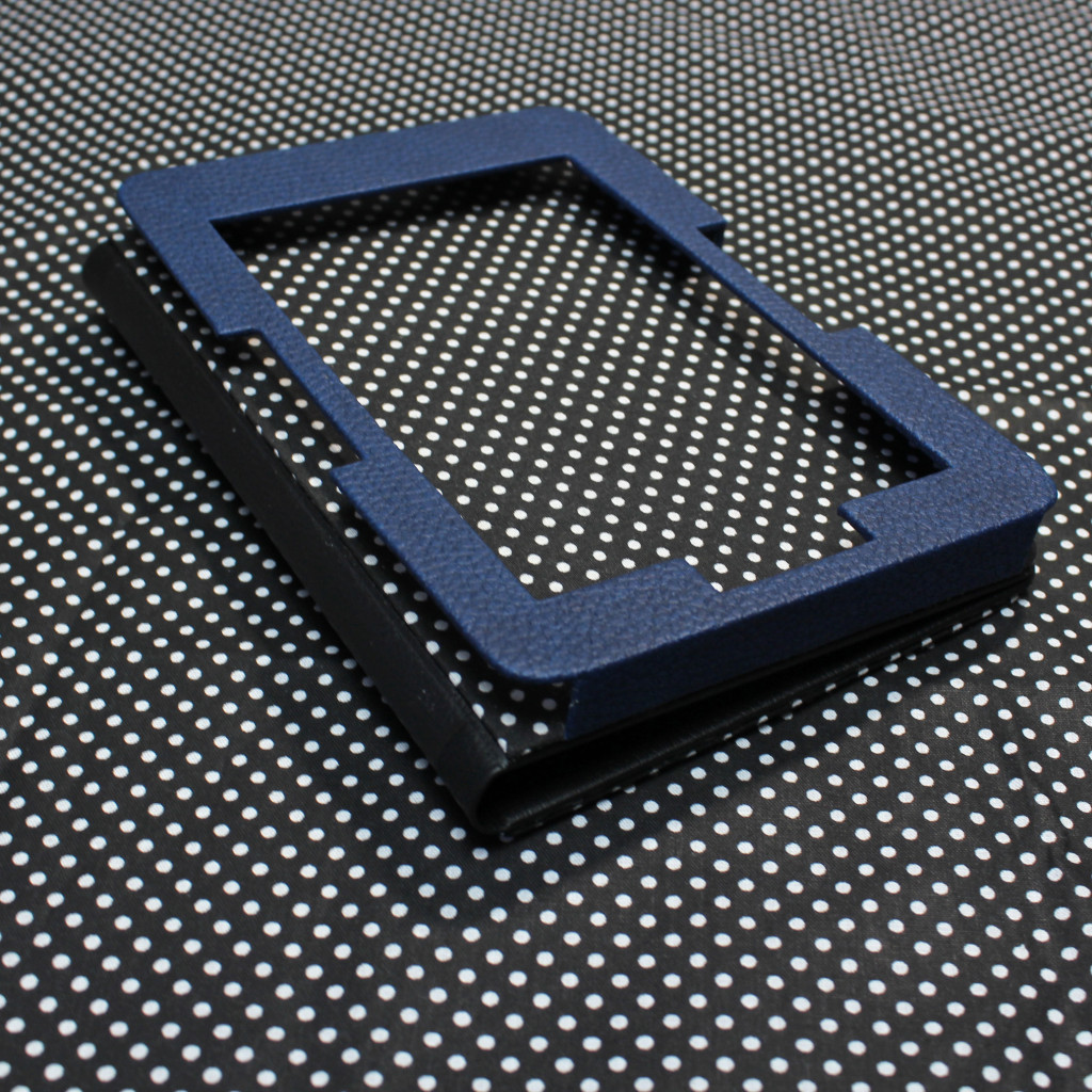 E-könyv olvasóhoz készült műbőr és vászon borítású, mágnessel záródó tok.