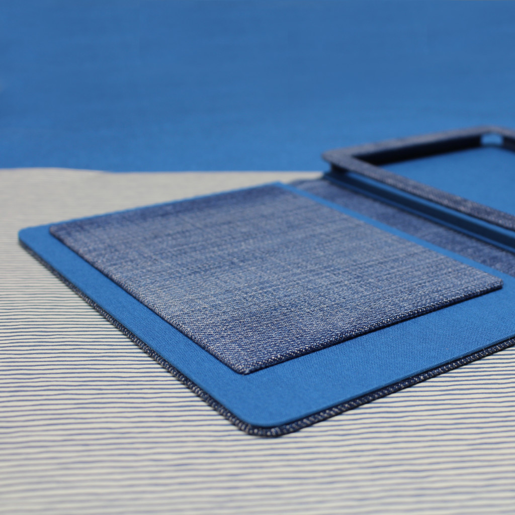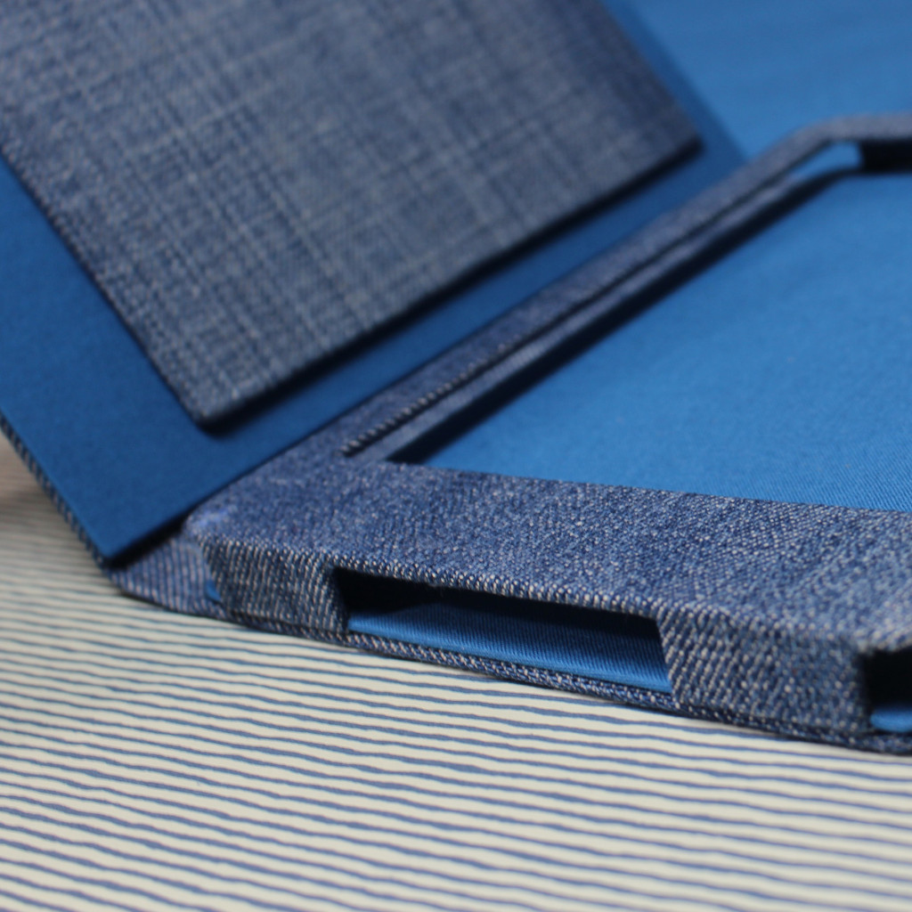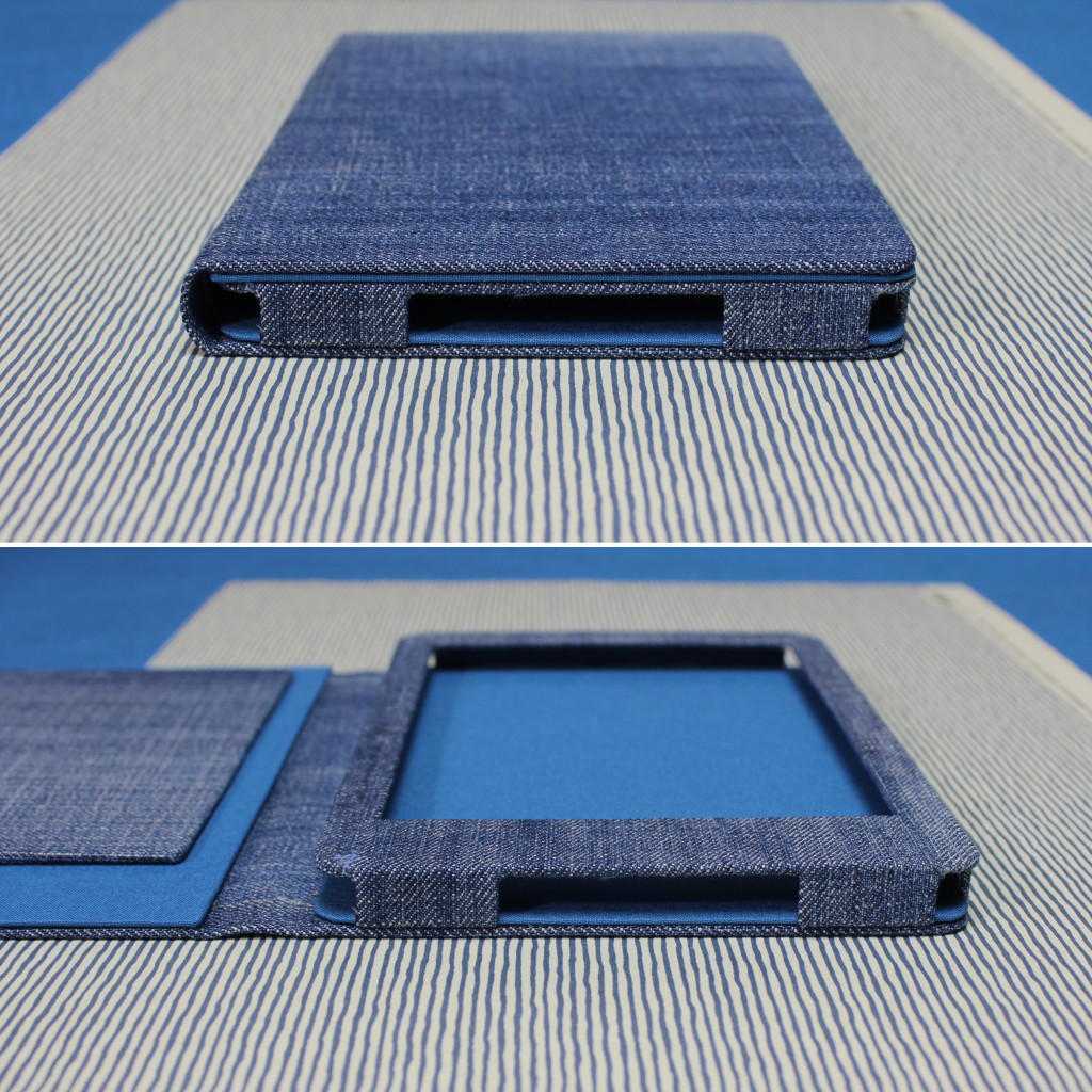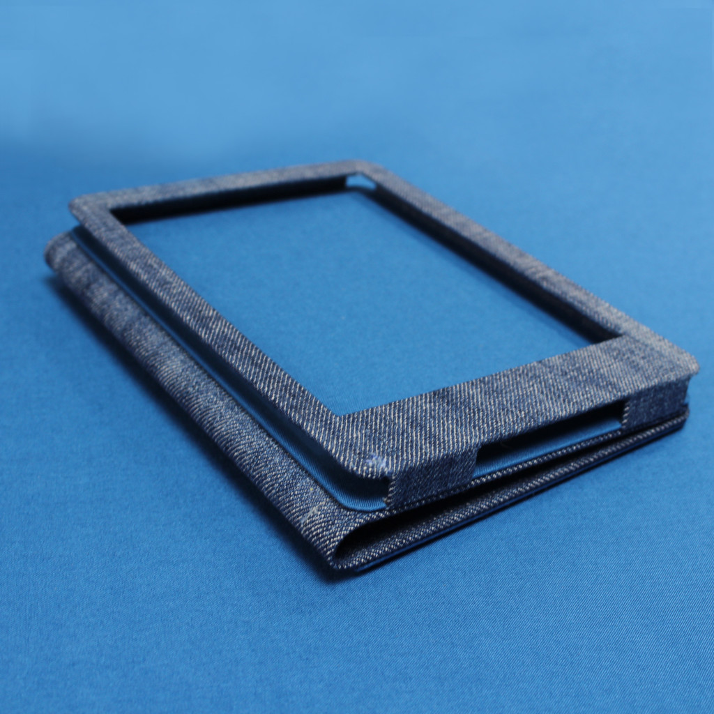 E-könyv olvasóhoz készült műbőr és vászon borítású, mágnessel záródó tok.